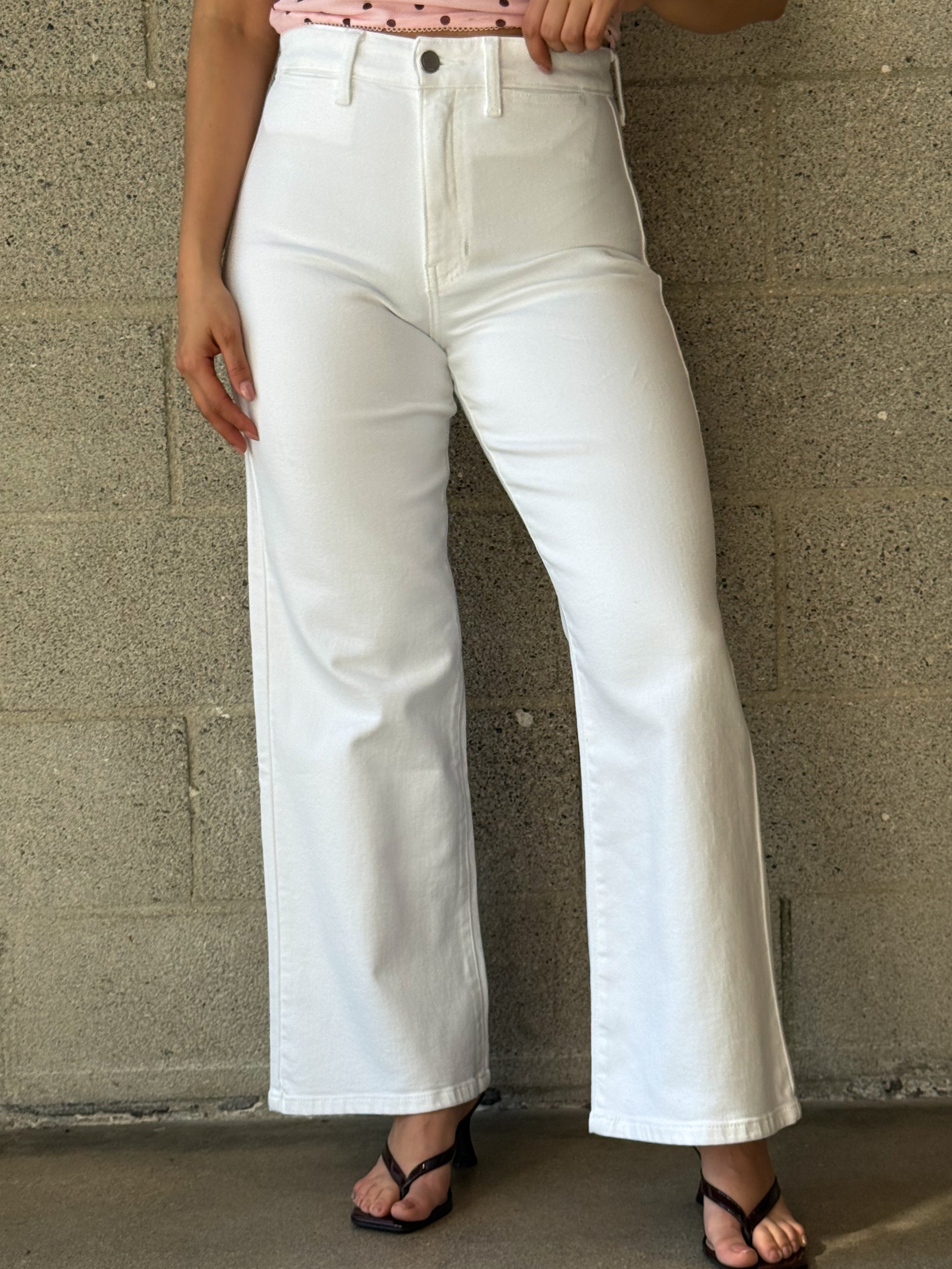 Welt pocket wide leg denim.
