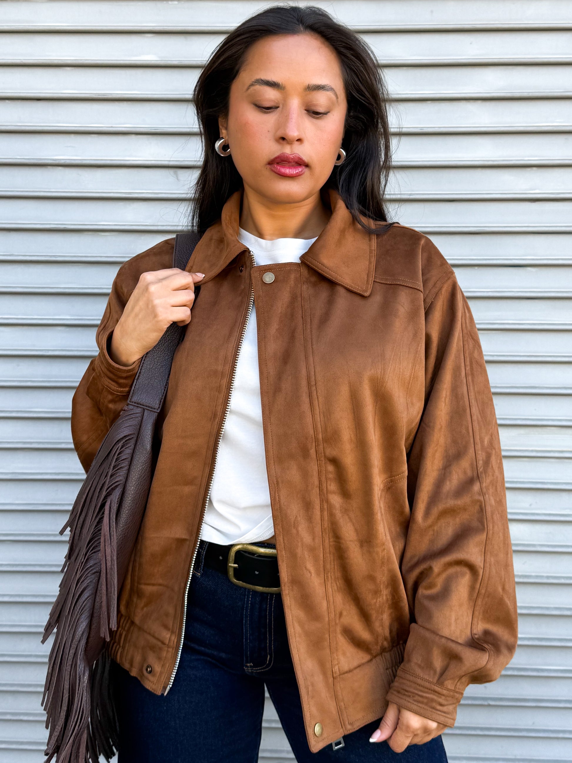 Suede bomber jacket.