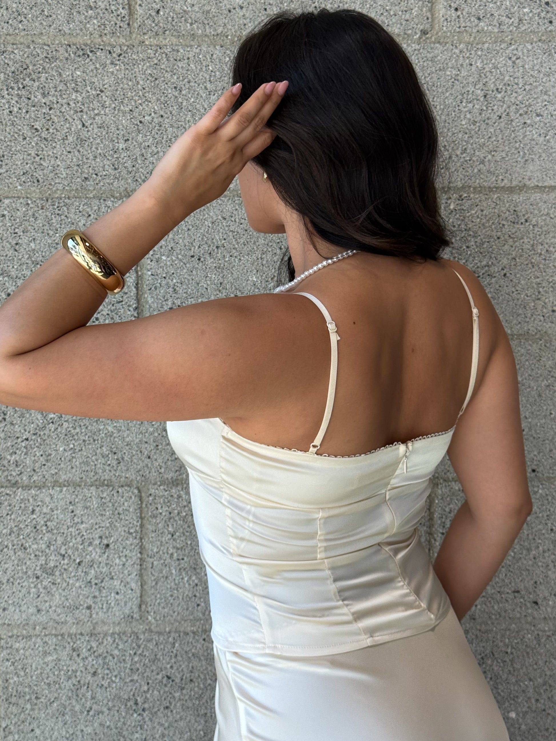 Satin two piece top + skirt set.