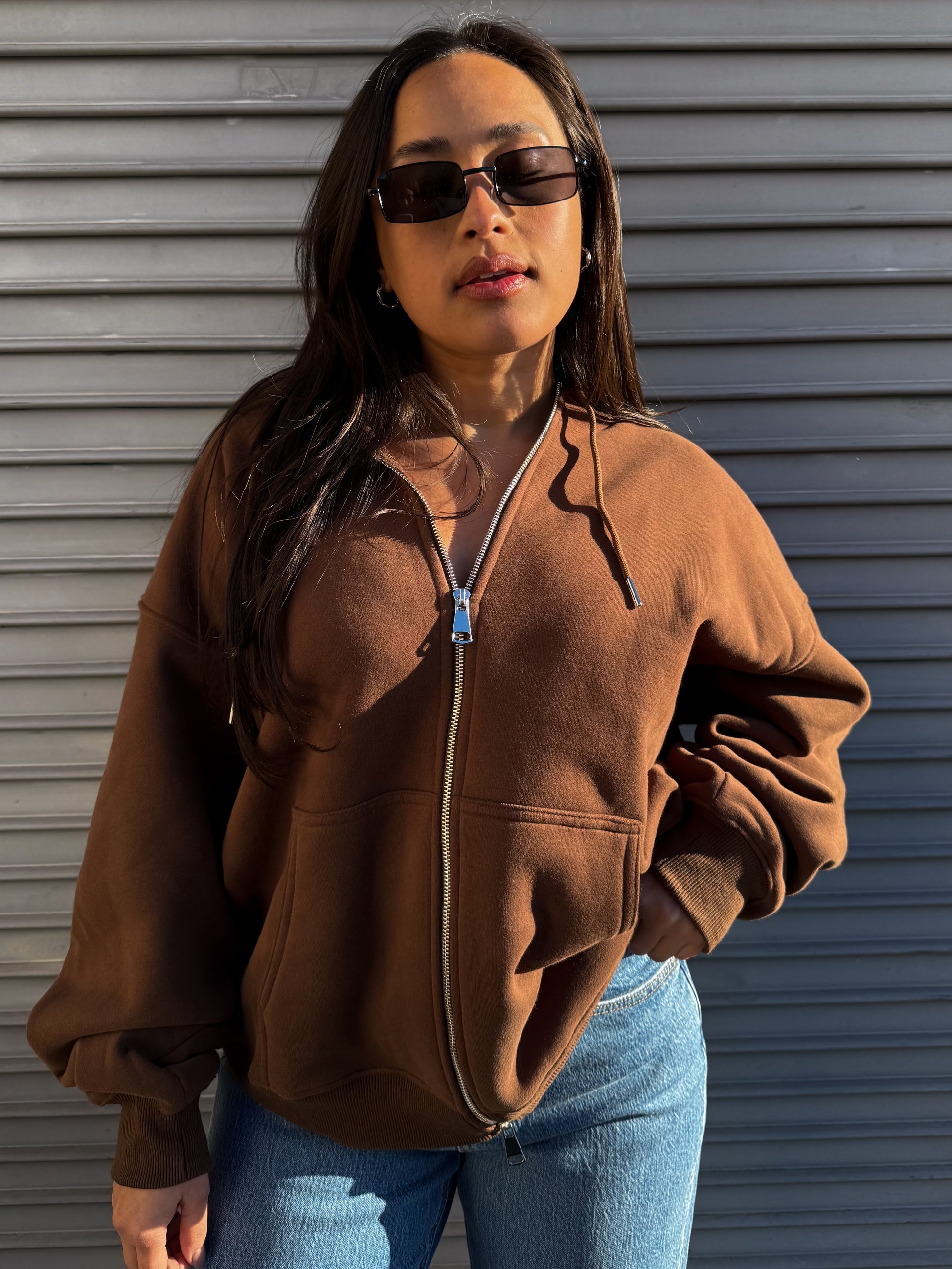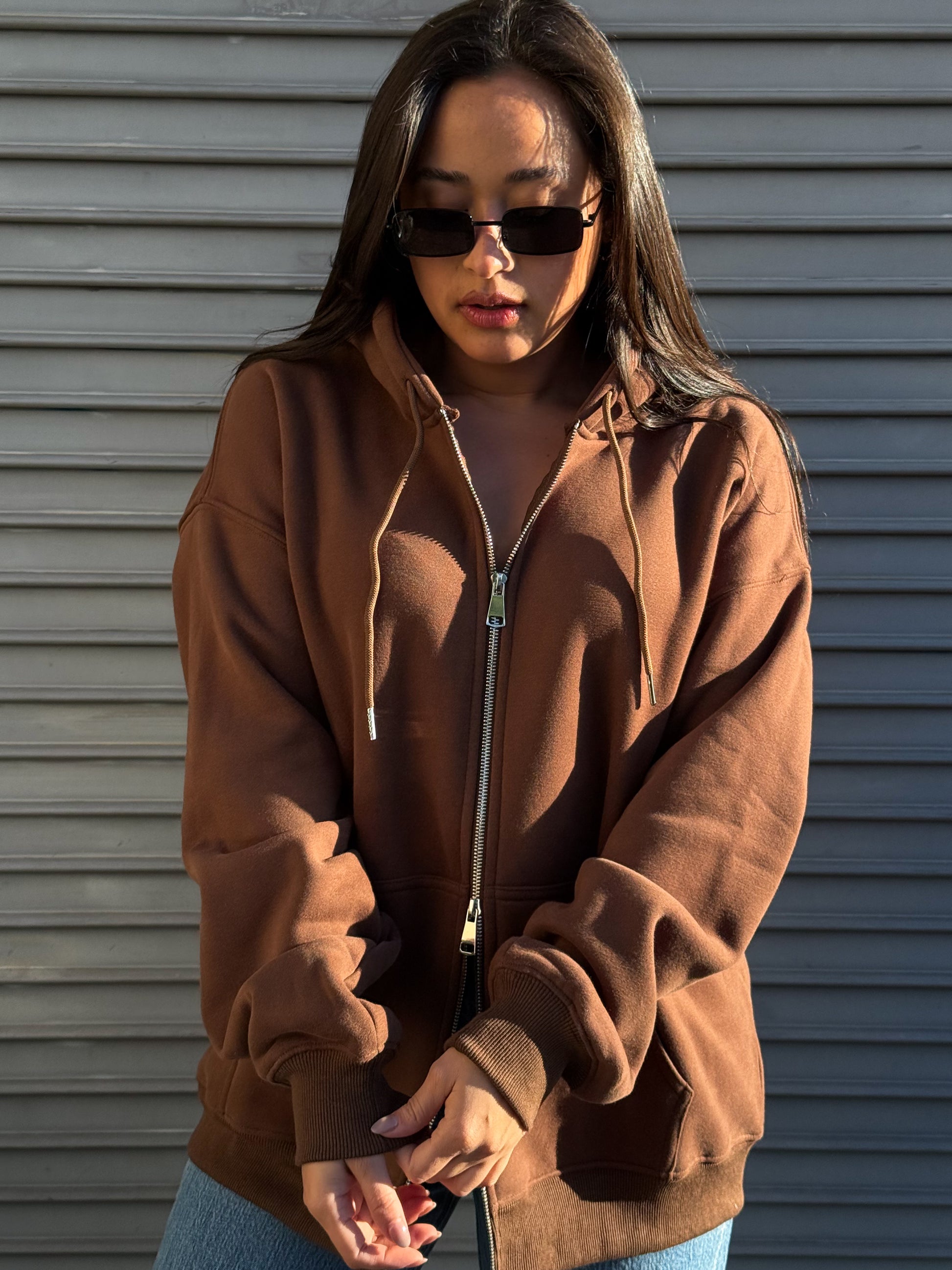 Oversized double zip up hoodie.