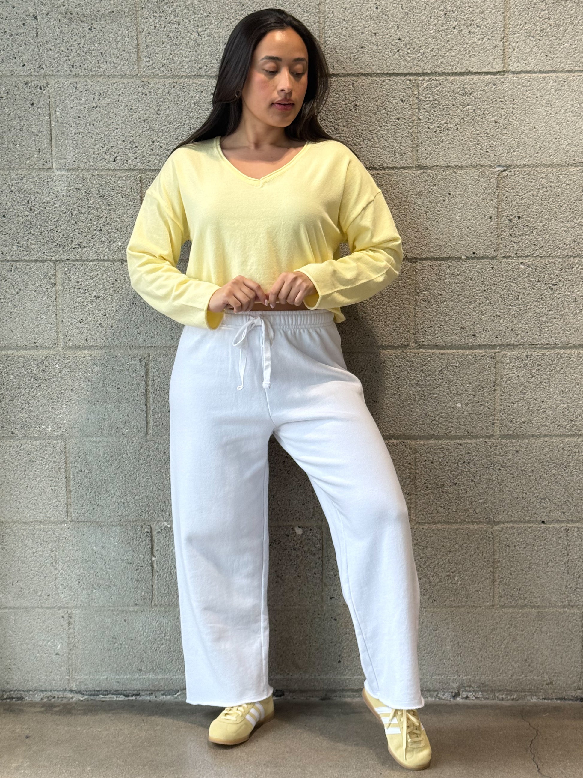 Long sleeve drop shoulder v-neck boxy cropped sweater.