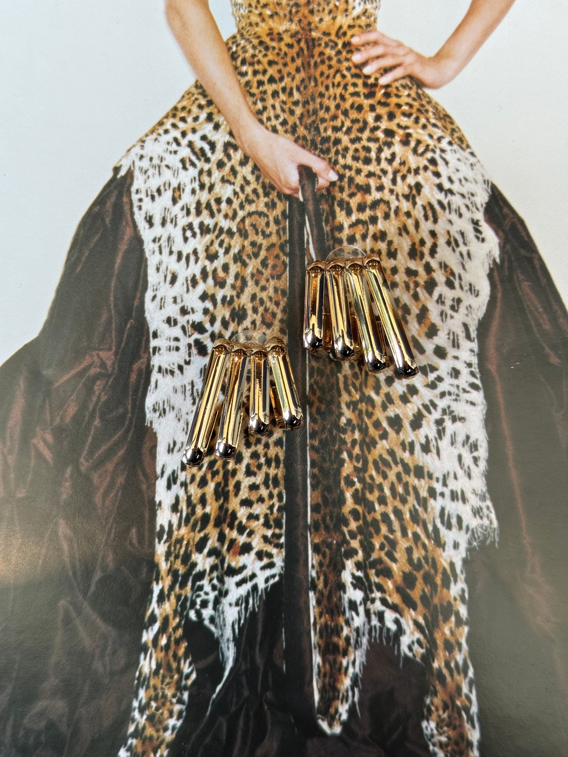 Gold earrings.