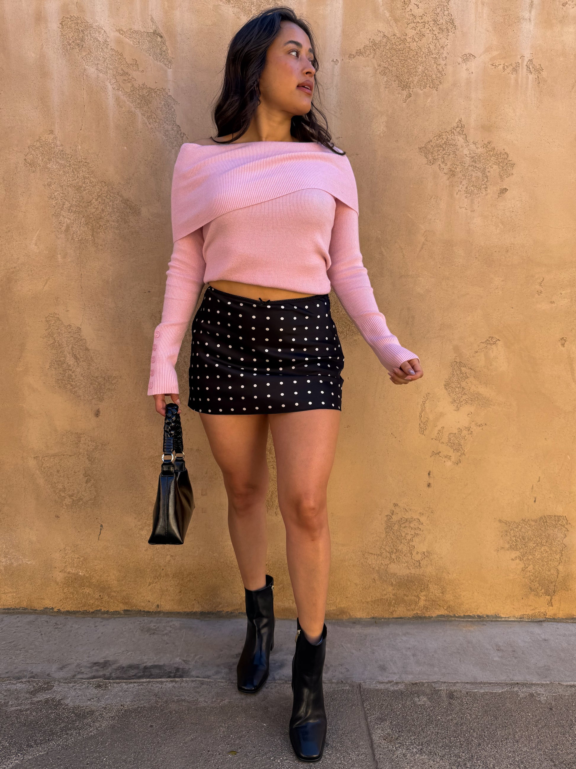 Polka dot mini skirt.